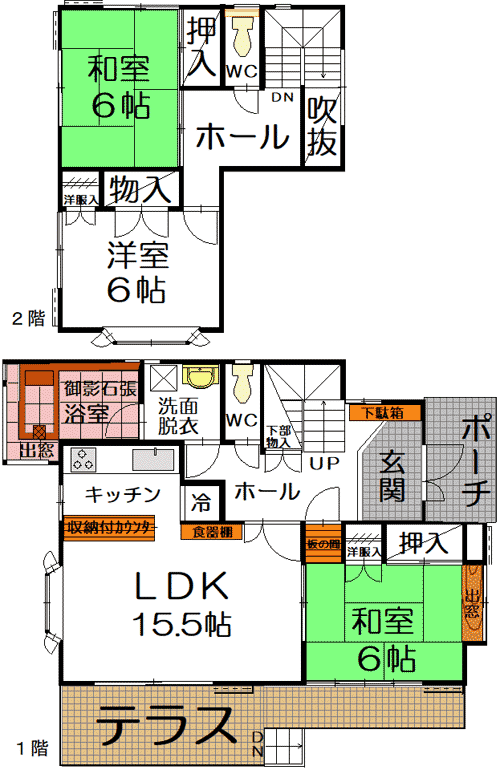 | 面積 | 1階62.93平米 2階34.98平米 延べ97.91平米 | |
