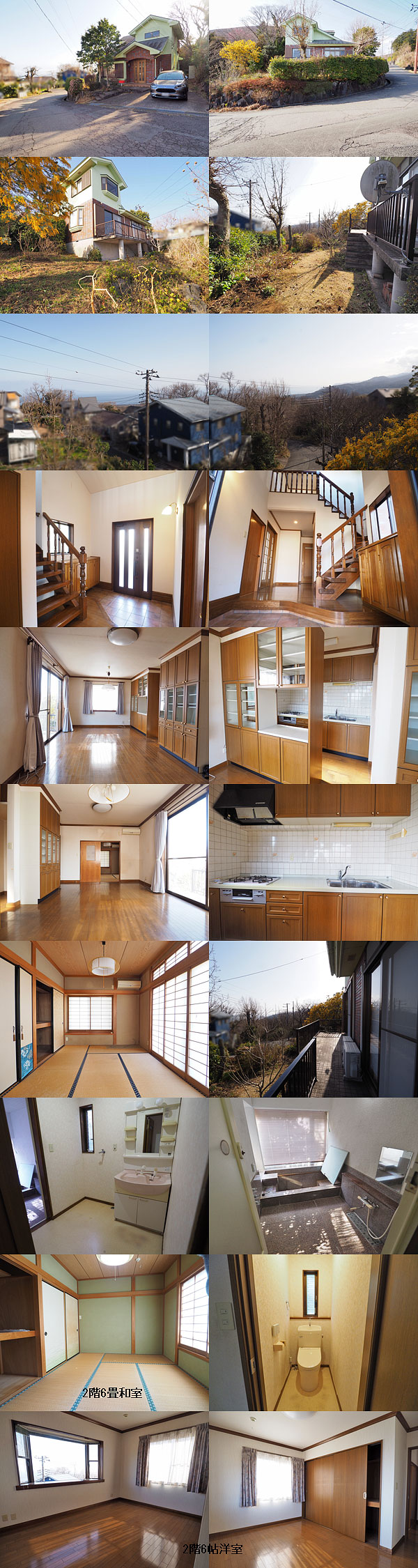 大島.海.天城連山望む、吹抜玄関ホールのある美築3LDK、御影石貼りの浴室、温泉権付、約6幅道路のほぼ平坦な東南角地、陽当り良好で病院やバス停にも近く永住別荘に適